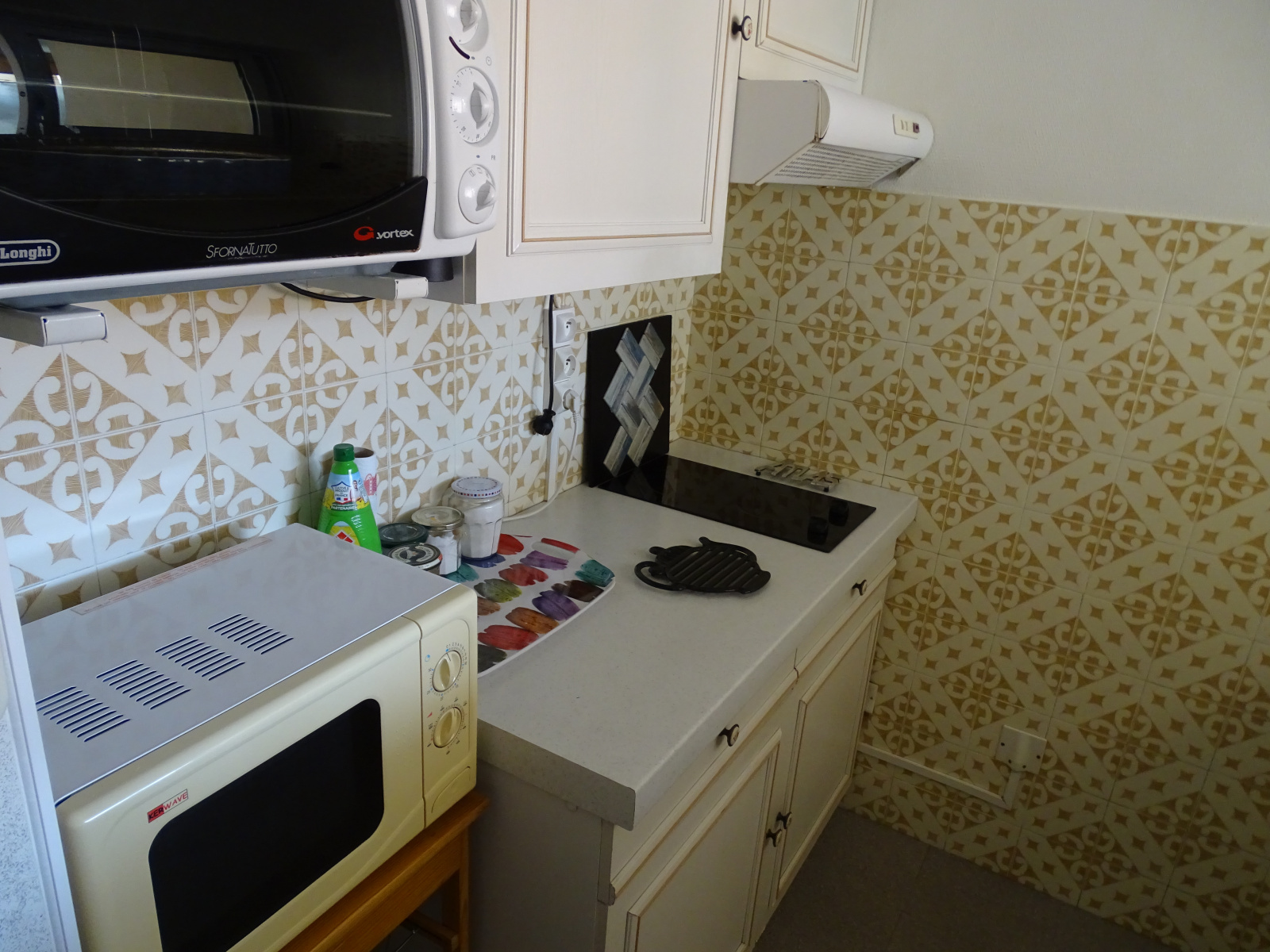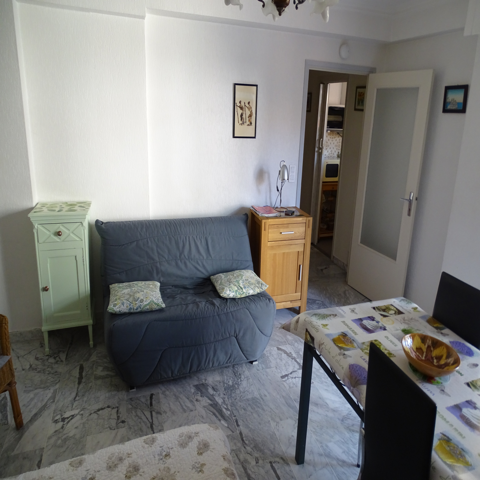 Composé : Entrée avec placard - Séjour avec un lit deux personnes (140cm), un canapé non convertible, Télévision, placard, donnant sur terrasse expo EST, calme. Lave linge - Cuisine indépendante avec réfrigérateur/congélateur, four, 2 plaques électriques, hotte, micro-ondes – Salle d'eau - WC indépendant.