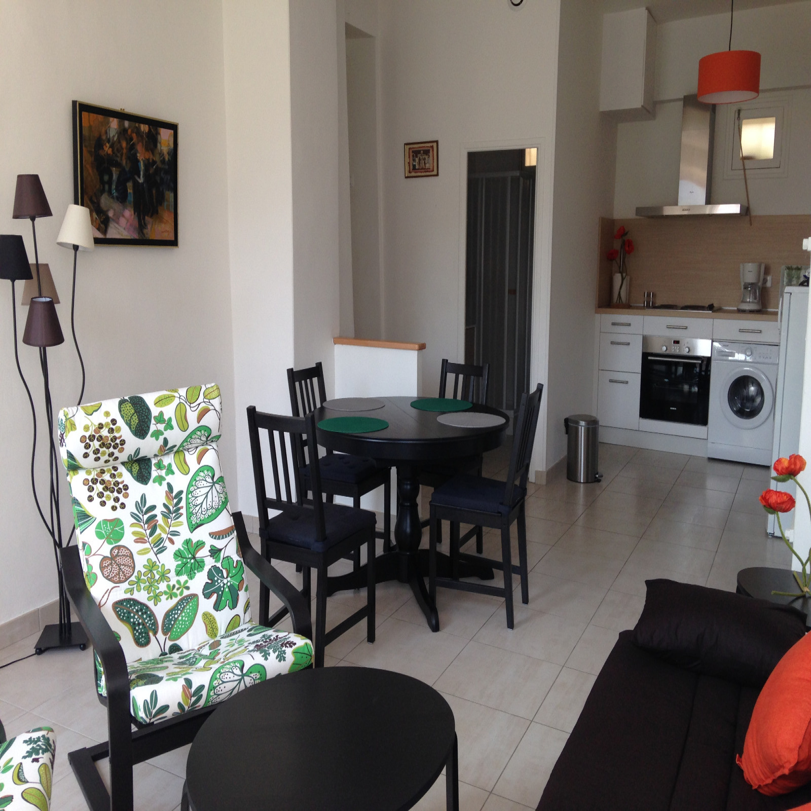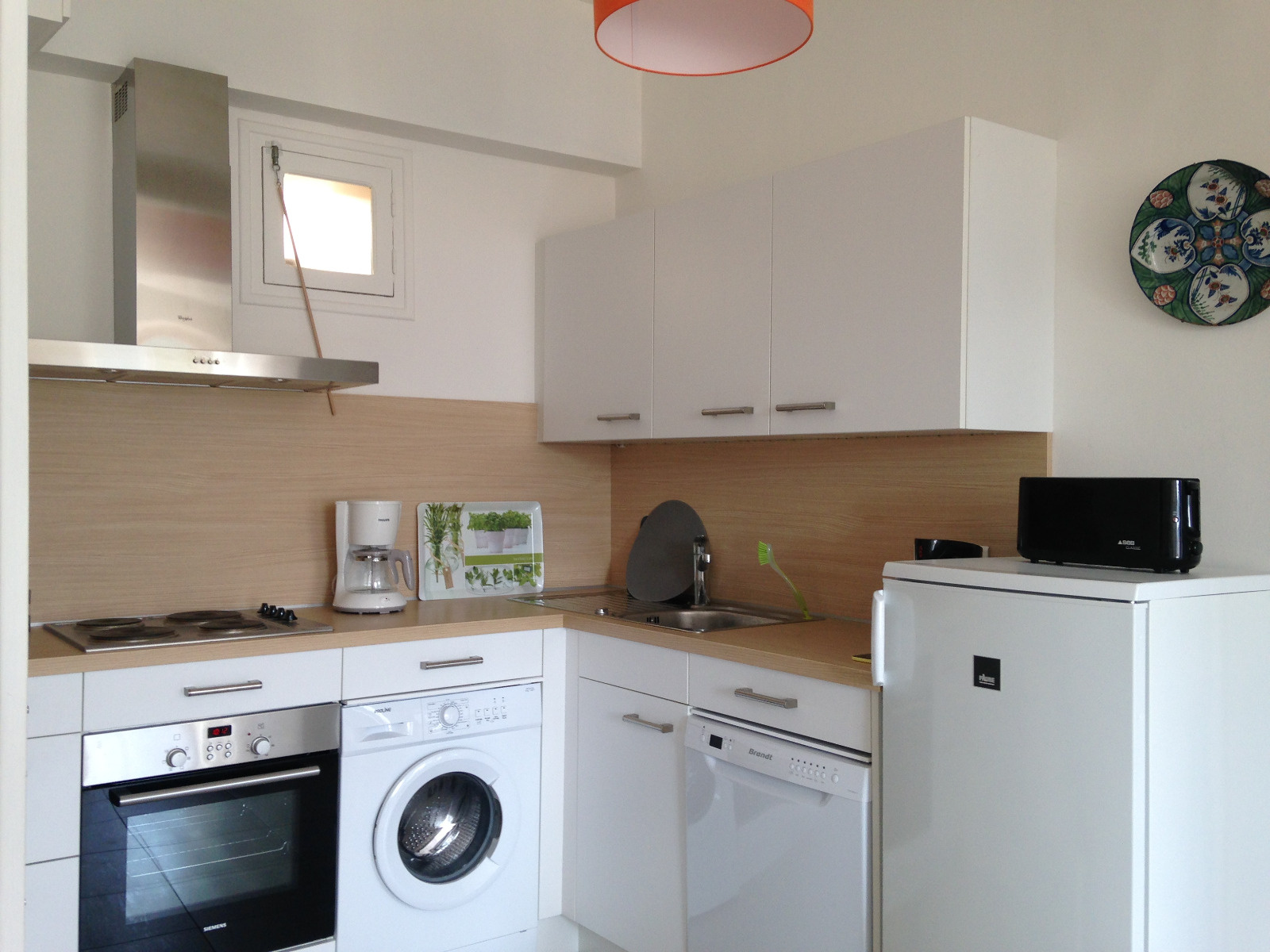 L’appartement est composé d’une entrée – salon avec canapé lit clic-clac 2 personnes, TV, WIFI - cuisine américaine avec four, plaque électrique 4 feux, hotte, lave linge, lave vaisselles, réfrigérateur/congélateur – une chambre avec un lit 2 personnes - dressing – une 2ème chambre avec un lit 2 personne, armoire - une salle d’eau avec douche, WC.