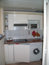 Appartement compose d'une entrée avec placard - d’un séjour avec un canapé-lit 2 personnes, une télévision - d’une cuisine équipée ouverte sur le séjour avec petit réfrigérateur, Grill/four électrique, plaque vitrocéramique 4 feux, lave linge - une chambre avec 1 lit de 2 personnes en 160cm - une salle de bains – WC indépendant - Terrasse.