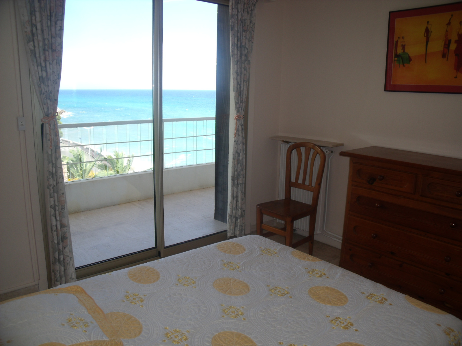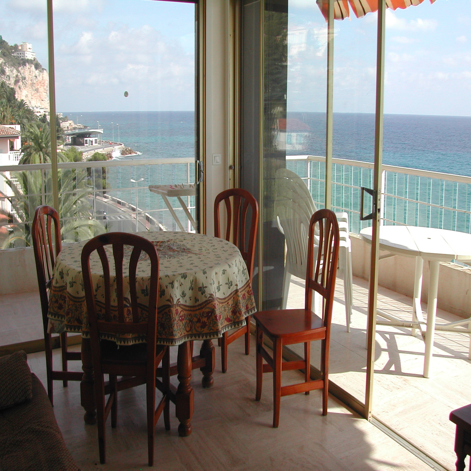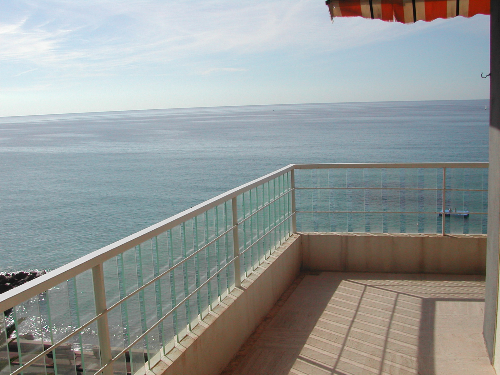 Composé : Entrée avec placard - 1 séjour donnant sur grande terrasse avec vue mer et ports de Garavan, avec un canapé lit 2 personnes, télévision - 1 chambre avec un lit deux personnes - 1 cuisine indépendante équipée avec micro ondes, réfrigérateur-congélateur, four électrique, plaques électriques - WC séparé - salle de bains avec lave linge - Très belle terrasse face mer avec store .