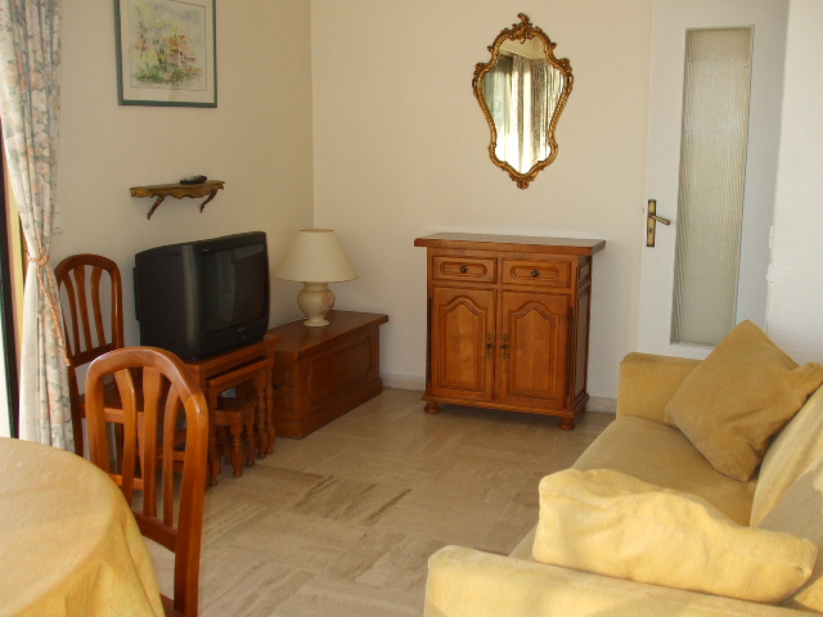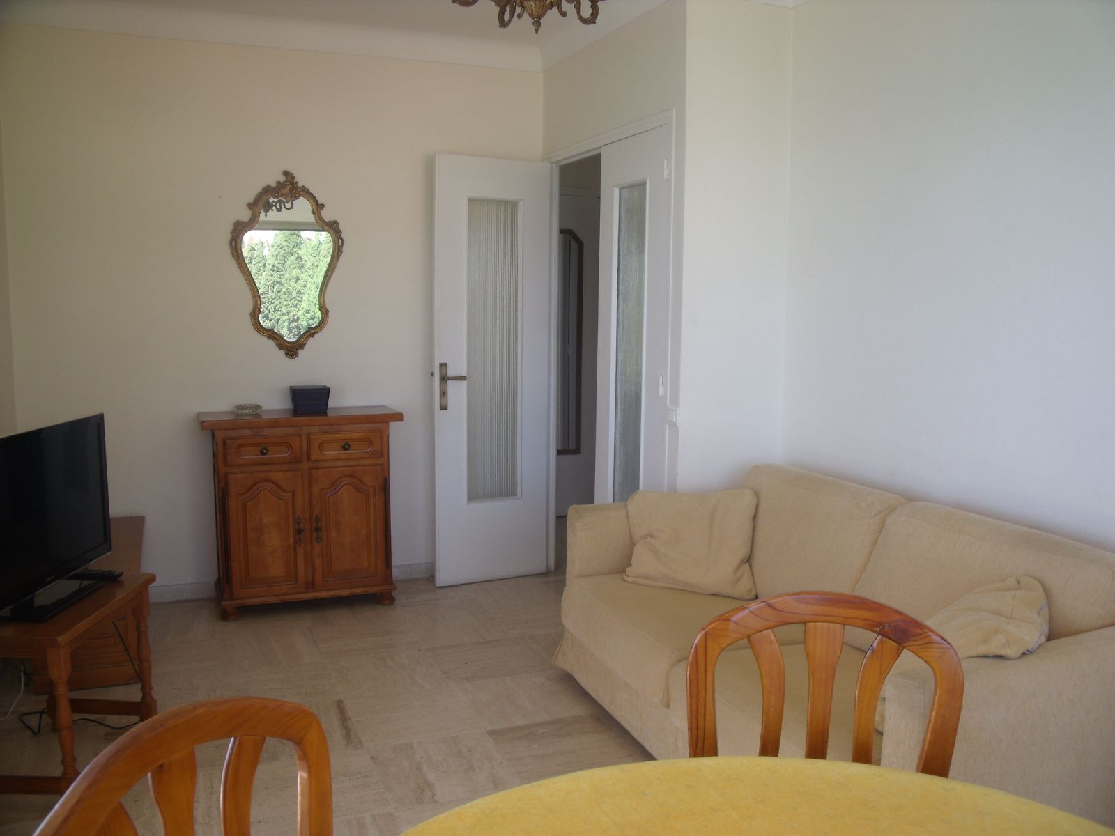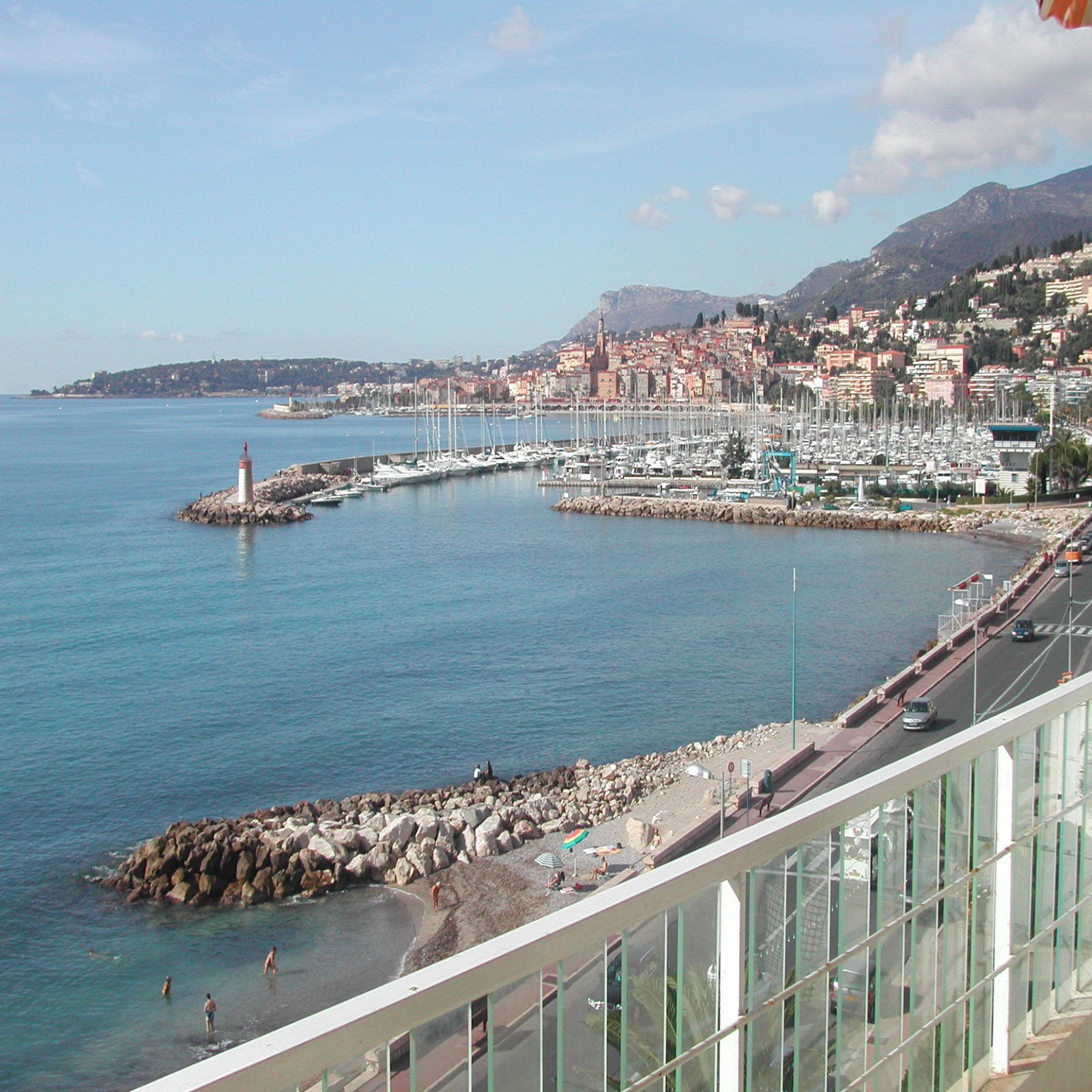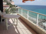 Composé : Entrée avec placard - 1 séjour donnant sur grande terrasse avec vue mer et ports de Garavan, avec un canapé lit 2 personnes, télévision - 1 chambre avec un lit deux personnes - 1 cuisine indépendante équipée avec micro ondes, réfrigérateur-congélateur, four électrique, plaques électriques - WC séparé - salle de bains avec lave linge - Très belle terrasse face mer avec store .