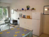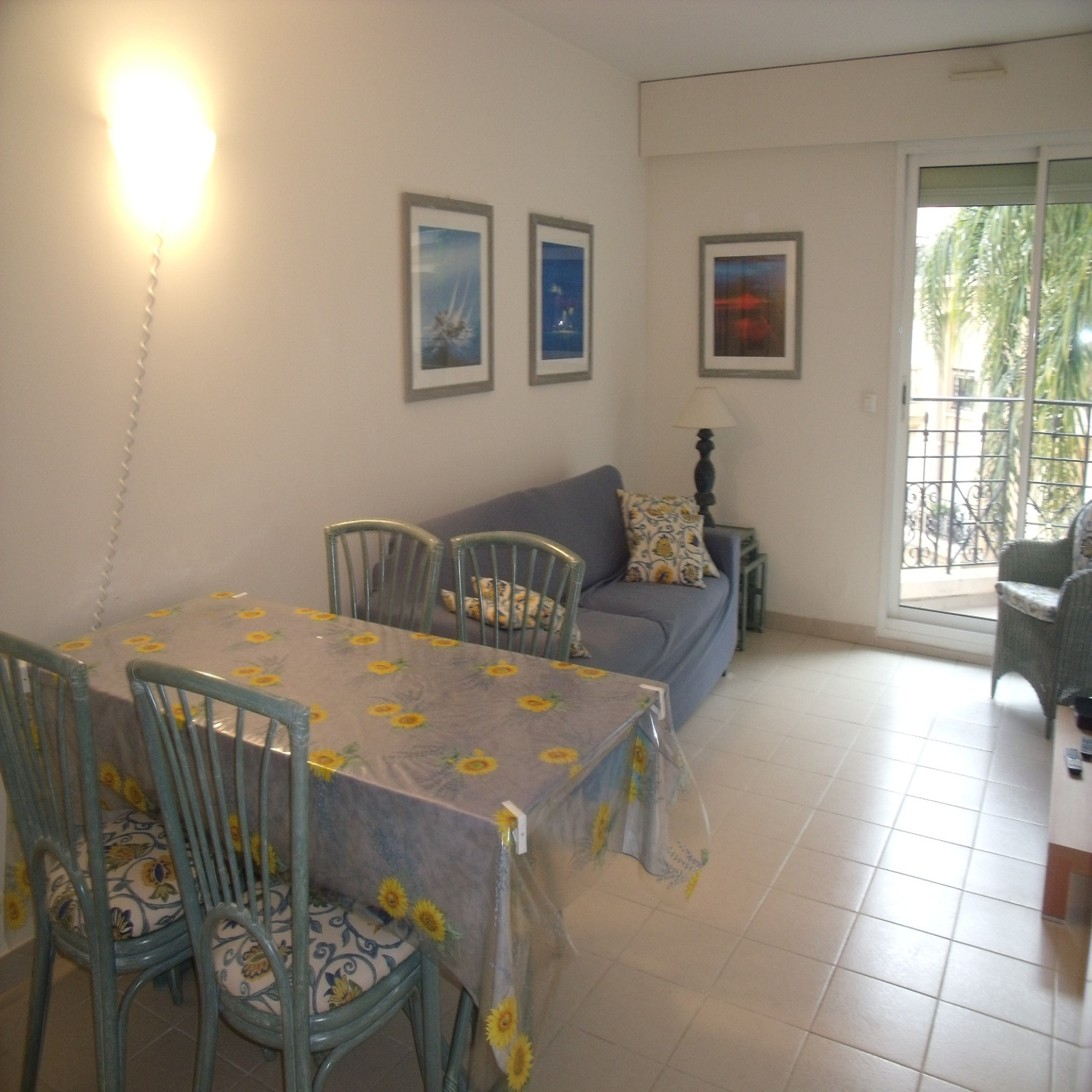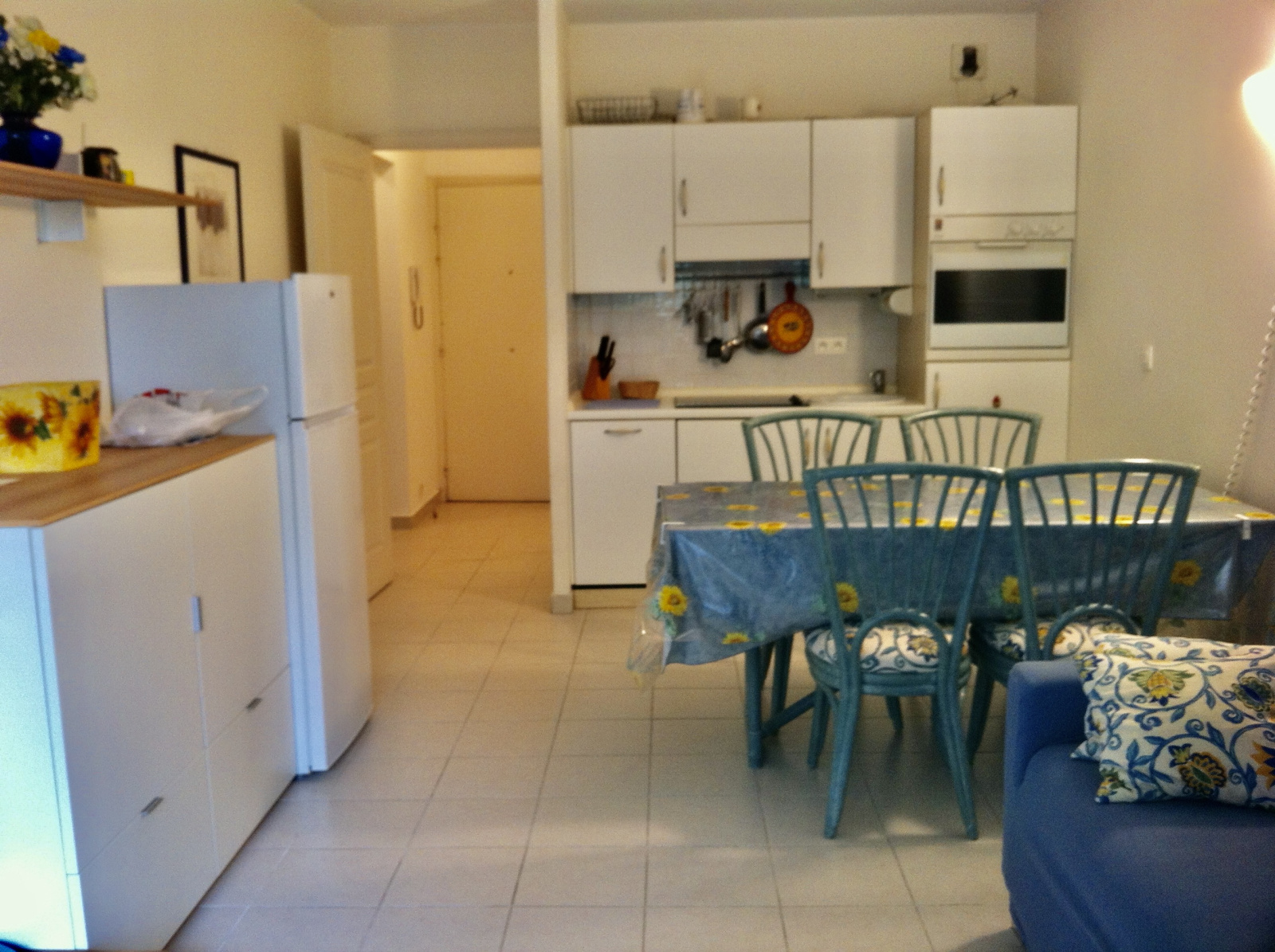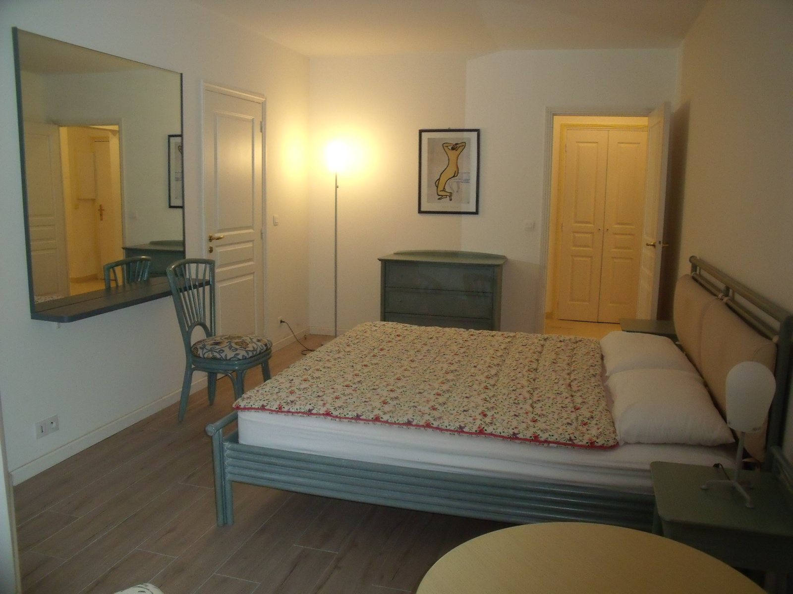 Composé : une entrée avec placards – Cuisine américaine équipée : plaque vitrocéramique, petit réfrigérateur avec petit freezer, four, hotte, lave linge, lave vaisselle – Séjour avec canapé-lit deux personnes, TV – une chambre avec un grand lit 2 personnes + petite pièce rangement et placard – salle de bains avec bidet – WC indépendant. Balcon. Possibilité de louer un parking en supplément au 3ème sous-sol