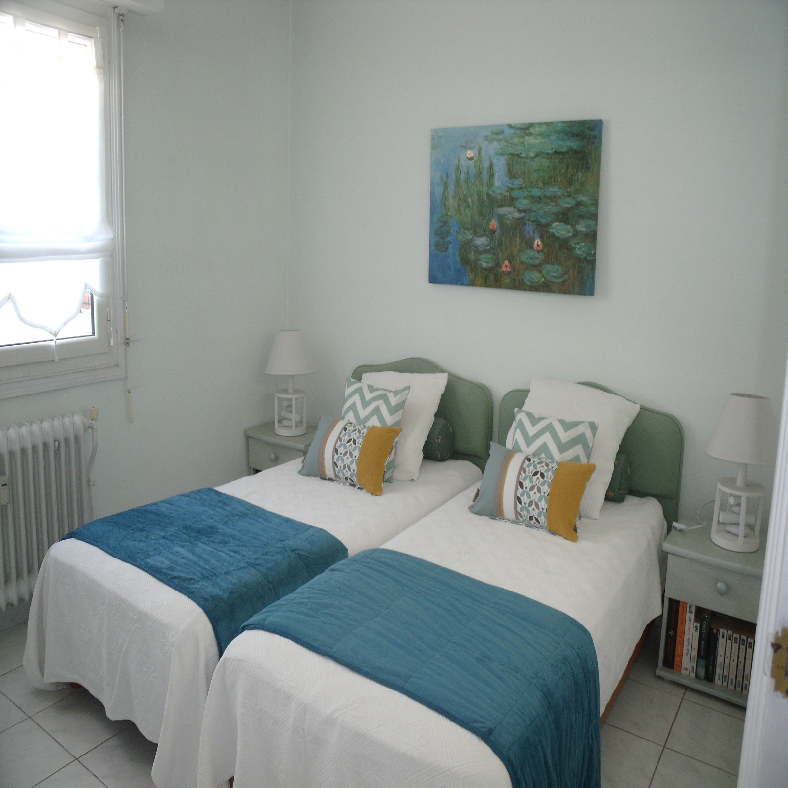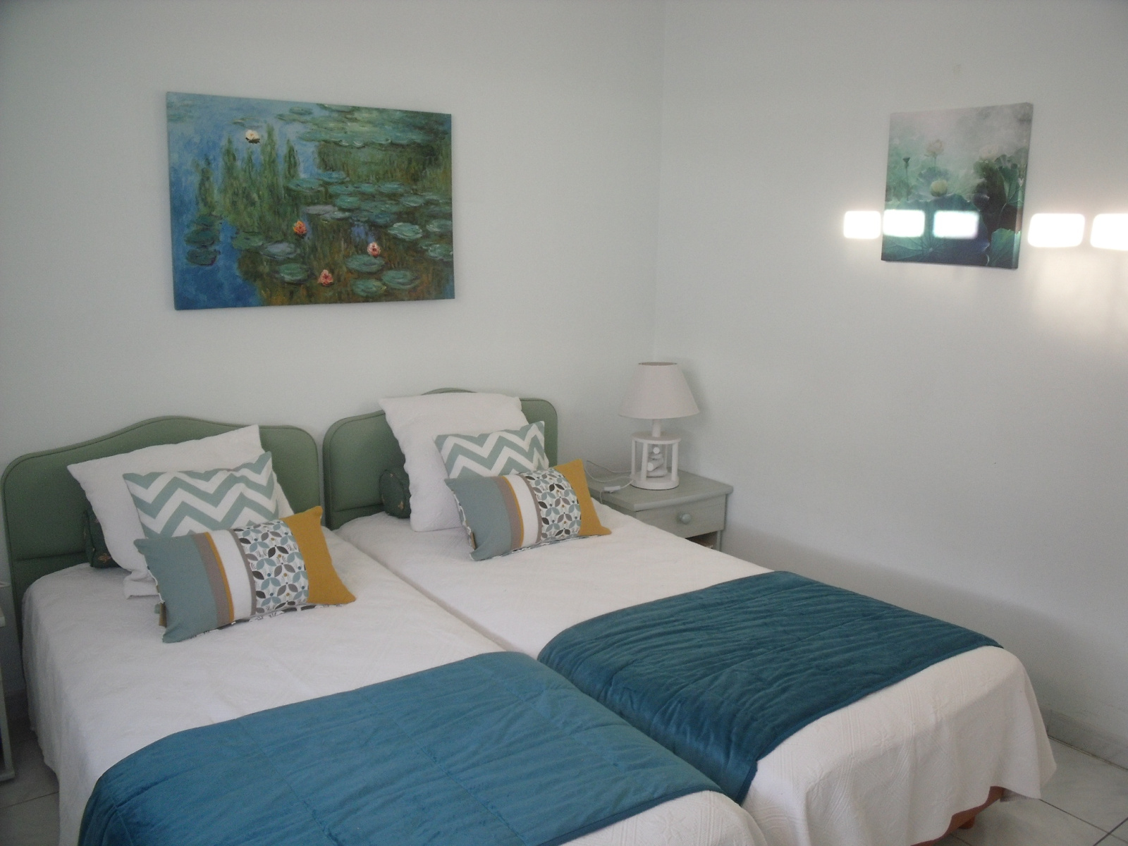 Composé : Une entrée avec placard – Cuisine indépendante équipée avec lave linge, réfrigérateur-congélateur , plaque de cuisson électrique, four à catalyse – une chambre avec 2 lits 1 personne et grand placard - séjour donnant sur terrasse plein sud avec 1 canapé-lit 2 personnes, 1 fauteuil , Télévision. TOUT CONFORT, double vitrage.