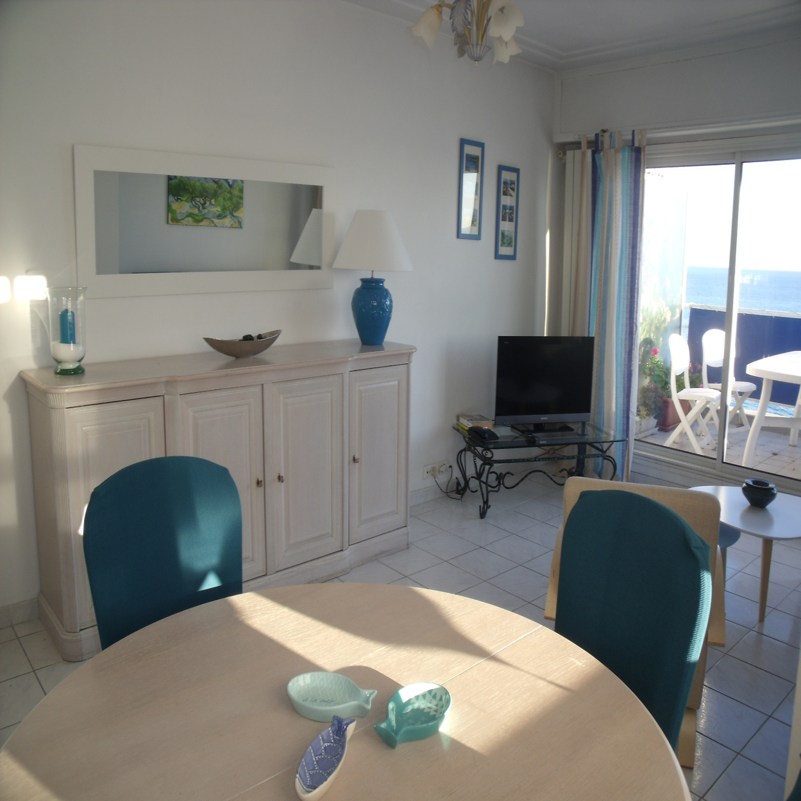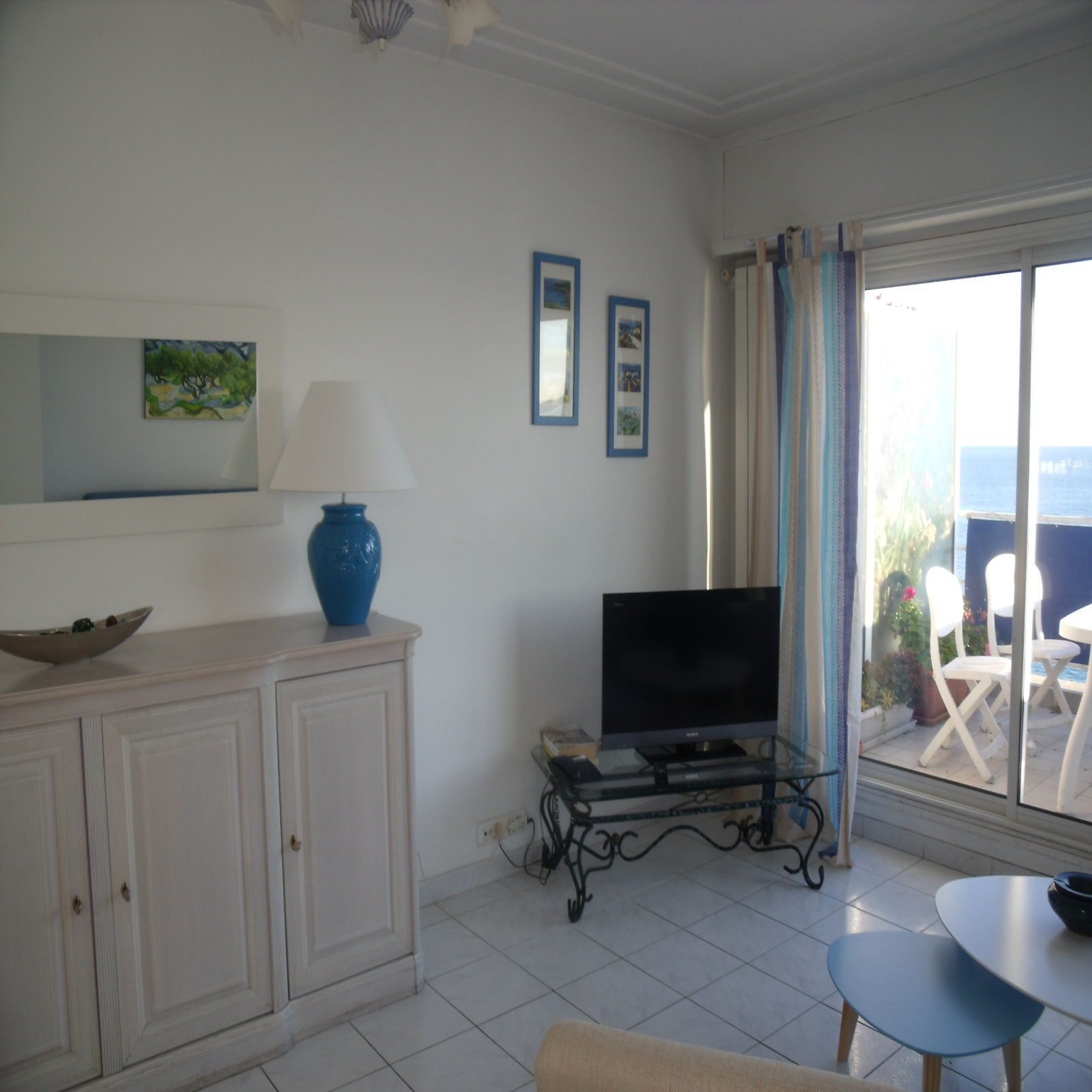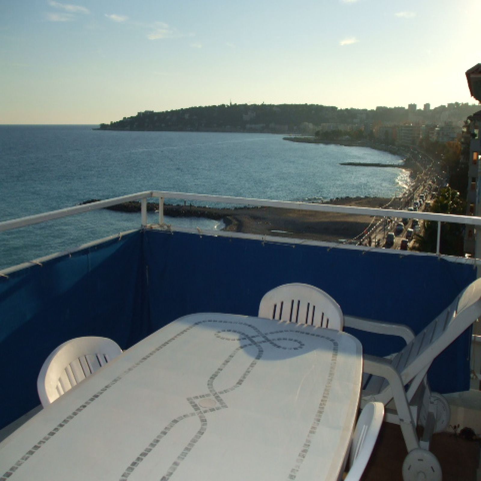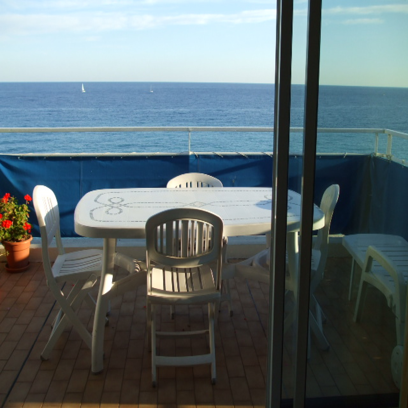 TRES BEAU DEUX PIECES Face mer, situé résidence " LE MAR Y NAN " au 6ème étage et dernier étage avec ascenseur, 14 Avenue CARNOT à MENTON. Immeuble front de mer, Centre Ville, Proche Casino et Commerces avec belle Terrasse face mer.