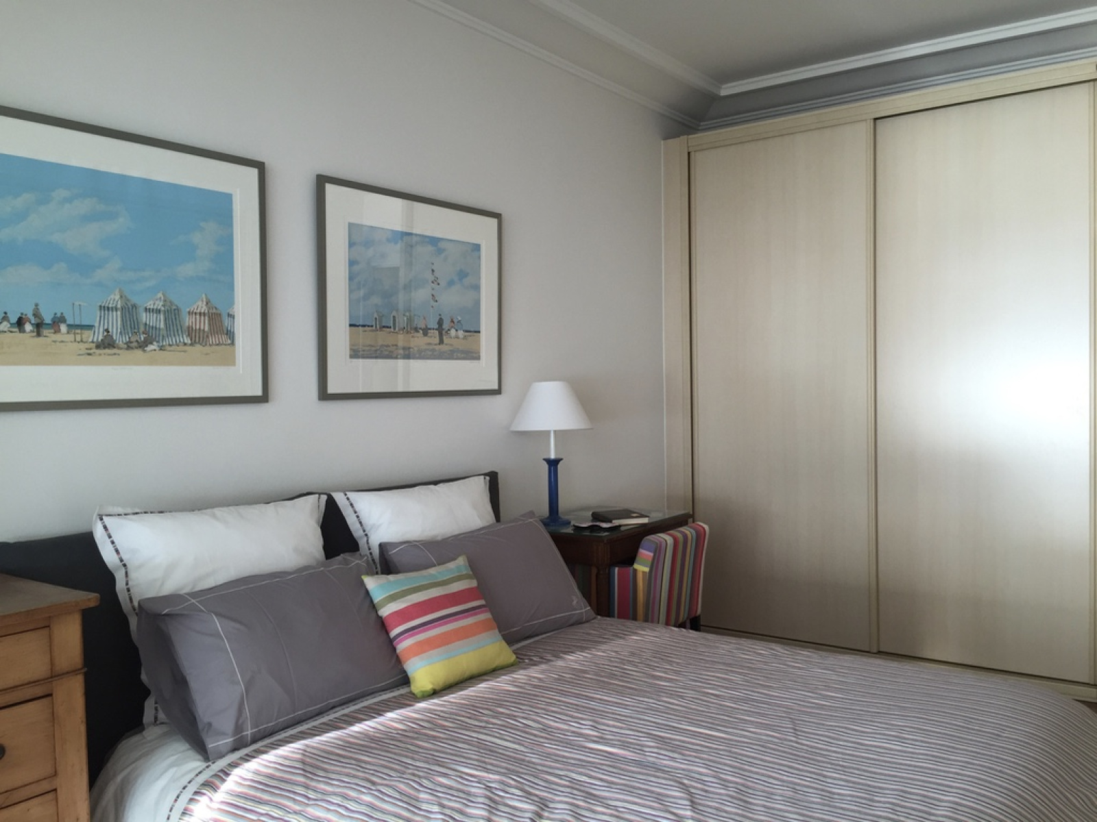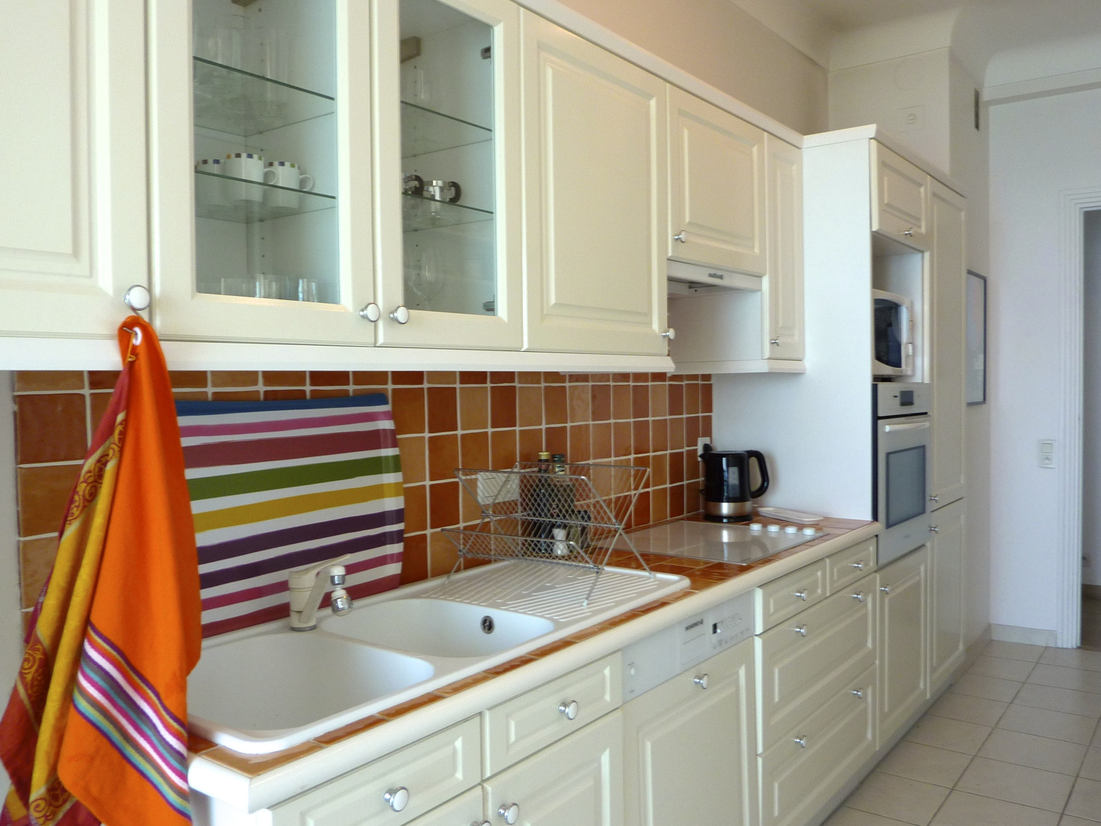 Composé : 1 grande entrée - 1 séjour avec terrasse face mer, 1 canapé non convertible, Télévision - 1 chambre face mer avec 1 lit 2 personnes, donnant sur la terrasse - une cuisine indépendante équipée avec lave-vaisselle, réfrigérateur avec congélateur, micro ondes, plaques cuisson vitro et four - Grande salle d’eau avec cabine de douche, lave linge, sèche linge. - un WC indépendant – grand dressing. Appartement climatisé. Internet
