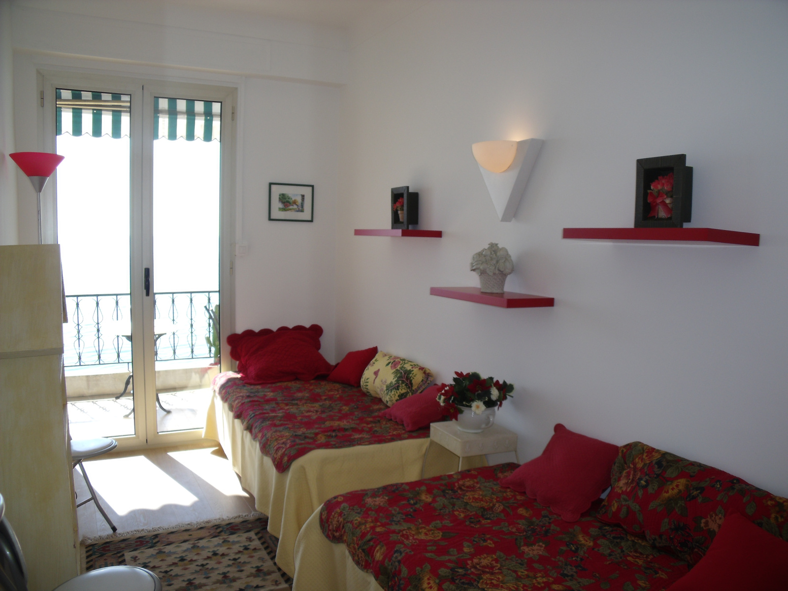 TRES BEAU DEUX PIECES Refait Entièrement à neuf, situé résidence "PARIS PALACE bloc A" au 5° étage avec ascenseur, 2 avenue Félix Faure à MENTON. Très Bel Immeuble, Front de mer et face mer. Composé d'une Entrée avec placard mural - séjour avec un canapé-lit 2 personnes, Télévision - cuisine américaine équipée avec, réfrigérateur-congélateur, four/four micro-ondes, plaque vitrocéramique, hotte aspirante, lave vaisselle – une chambre avec 2 lits d’une personne - salle d’eau avec lave linge - WC indépendant - Terrasse face mer avec très belle vue. INTERNET et WIFI