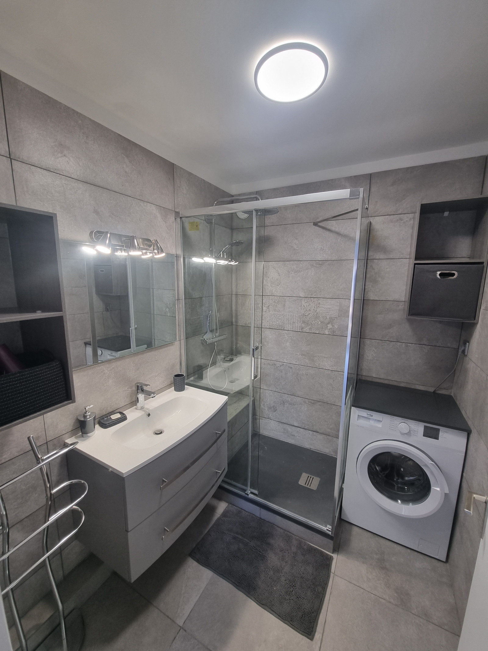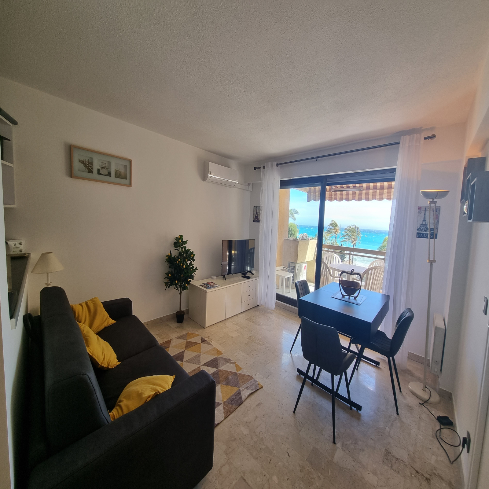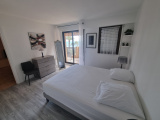 Appartement composé : Entrée- Séjour avec canapé lit 2 personnes, Tv , Terrasse avec vue Mer - Cuisine équipée ouverte sur le séjour ( four, plaque, frigo-congélateur), chambre avec un lit 2 personnes en 160, salle d'eau avec douche à l'italienne, lave linge, wc indépendante.